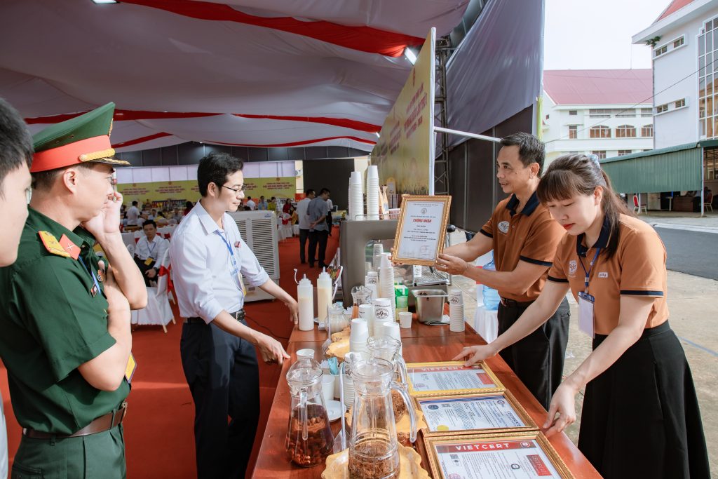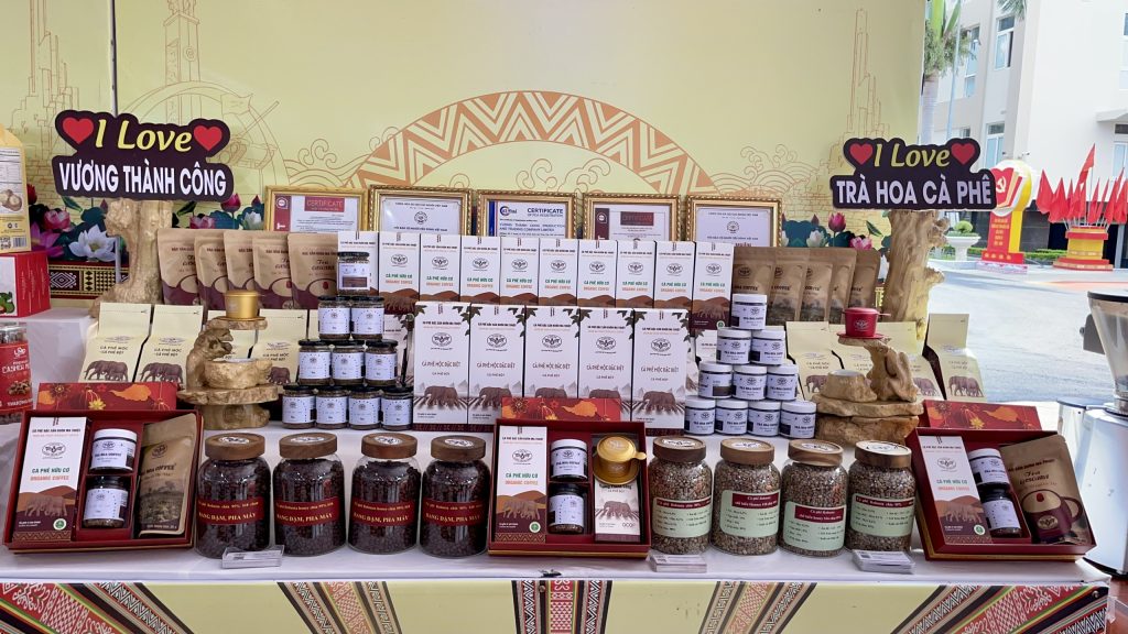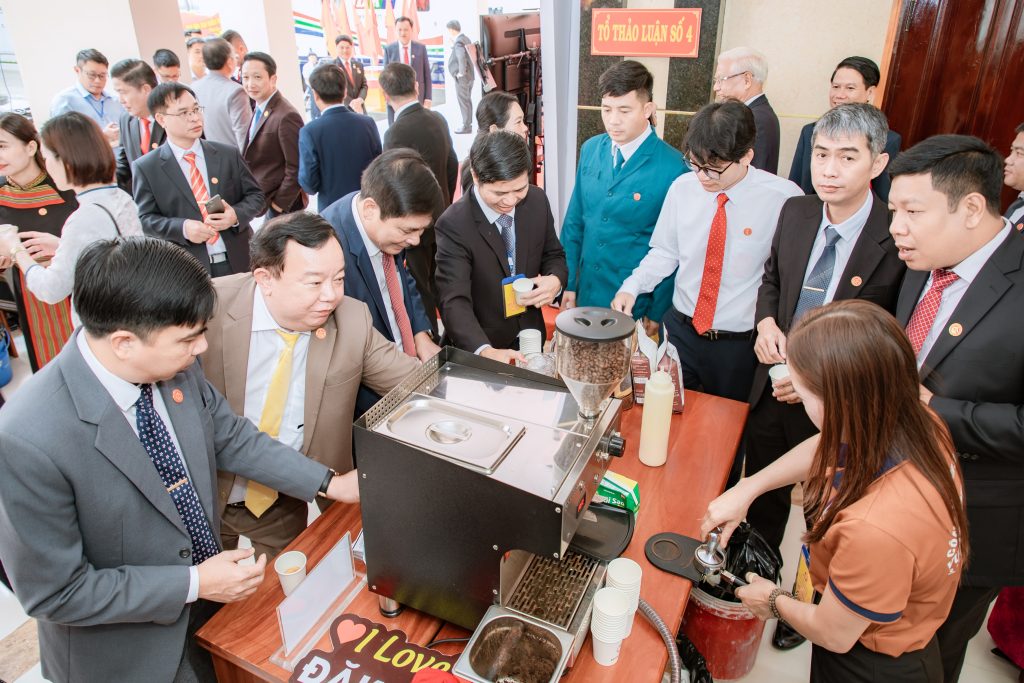 Tại Đại hội, gian hàng sản phẩm trưng bày của các doanh nghiệp nhận được sự quan tâm của Qúy Lãnh dạo và Qúy Đại biểu. Trong đó Công ty TNHH SX & TM Vương Thành Công là một trong những đơn vị vinh dự được Ban tổ chức quan tâm và taọ điều kiện được đồng hành cung cấp sản phẩm cà phê, trà từ hoa và vỏ quả cà phê lan tỏa đến Đại hội.