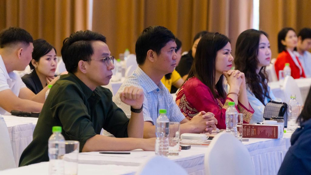 Doanh nhân Lê Văn Vương Giám đốc công ty TNHH SX và TM Vương Thành Công lắng nghe chia sẻ của các chuyên gia tại hội nghị “Từ Việt Nam đến Toàn cầu: Hành trình xuất khẩu nông sản Việt
