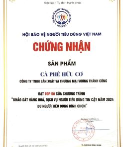 Thành phần: 100% Cà phê Robusta hữu cơ được chế biến theo phương pháp Natural.