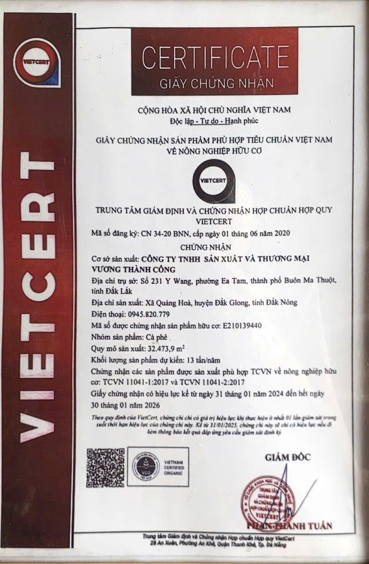 - Chứng nhận hữu cơ