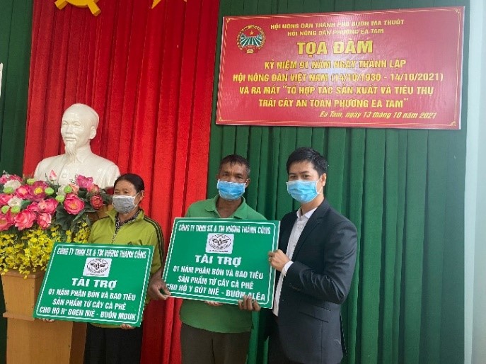 Trong đó, Công ty TNHH SX và TM Vương Thành Công đã và đang phối hợp đồng hành cùng Chính quyền địa phương Phường Ea Kao, trong đó Hội Nông dân phường đóng vai trò là “Cầu nối” giữa Nông dân với Doanh nghiệp liên kết sản xuất nông nghiệp bền vững. Triển khai nhiều chương trình tài trợ thiết thực nhằm hỗ trợ bà con nông dân, đặc biệt là các hộ nghèo, hộ đồng bào dân tộc thiểu số tại chỗ có hoàn cảnh khó khăn từng bước phát triển kinh tế ổn định cuộc sống.