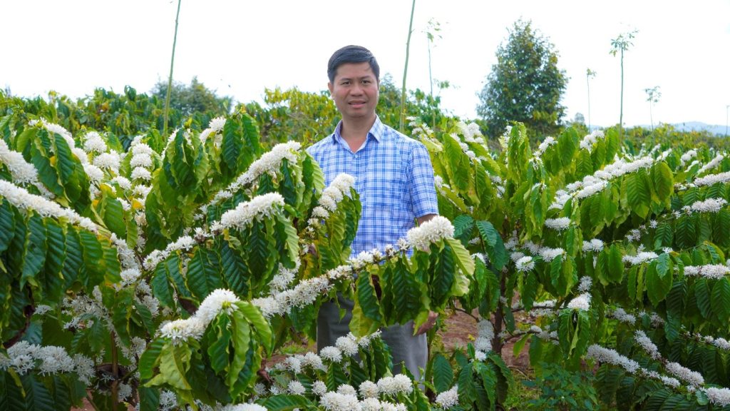 Vườn cà phê dự án Vương Thành Công nở rộ báo hiệu cho một mùa bội thu.